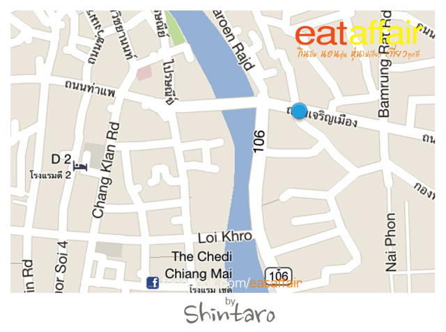 ร้านตั้งอยู่เชิงสะพานนวรัฐ ด้านทิศตะวันออก ใกล้กับสามแยกไปตลาดสันป่าข่อย เป็นร้านเล็กๆ ริมถนนเจริญเมือง