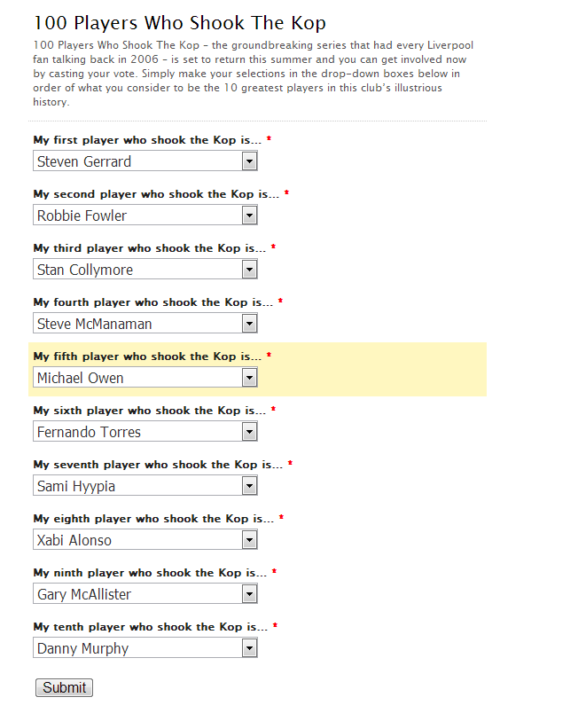 มาโหวต 10 นักเตะลิเวอร์พูลที่ทำให้คุณประทับใจกัน