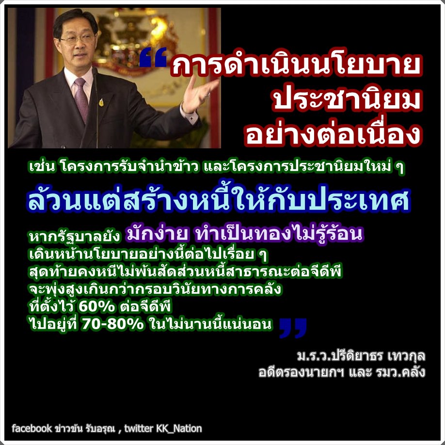 ตอบข้อหนึ่ง ที่พูดมาก็ถูกอะครับ ก็ต้องไปดูว่ารัฐบาลจะสามารถบริหารนโยบายประชานิยม เเละหนี้สาธารณะได้ภายในเวลาเดียวกันหรือเปล่า อันนี้ต้องลุ้น เขาอาจจะเก่งอย่างที่โม้เอาไว้ก็ได้ เเต่ถ้าทำไม่ได้ก็.........มาร่วมซวยด้วยกันครับ