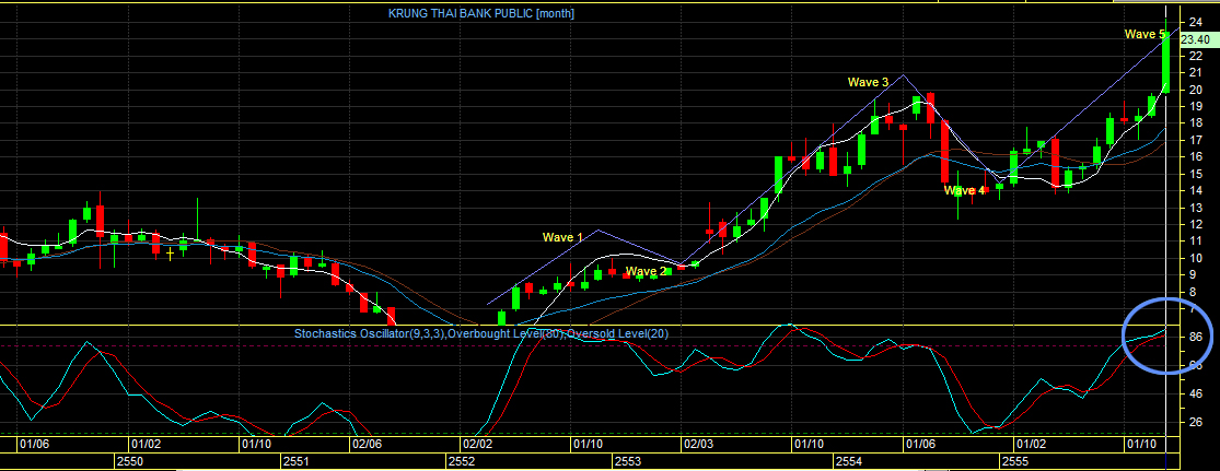 ถ้าเอาตามทฤษฏีนับเวฟจริงๆ ตอนนี้ KTB มีแนวโน้มหล่นเพราะเข้าเวฟ 5 แล้ว ถูกไหมคะ