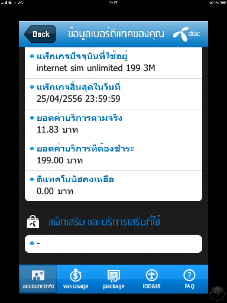 อยากสอบถาม FB เรื่องการเช็คยอดการใช้งาน cellular data ของ DTAC ใน IPAD ว่าเช็คยังไง และการตัดรอบบิลรายเดือน ตัดยังไงครับ ผมเปิดเบอร์วันที่ 8 มกรา แล้วผมซื้อไอแพดจาก Dtac shop สาขากาดสวนแก้ว พร้อมโปร