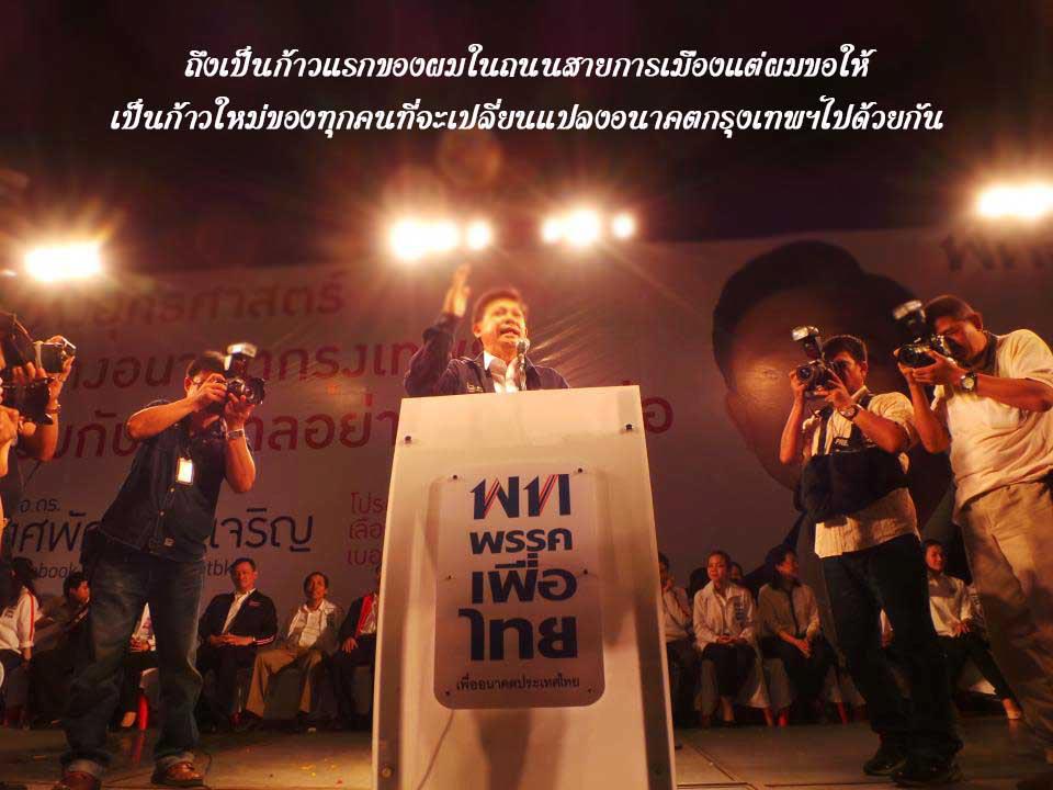 และพี่น้องชาว กทม. และทุกท่านที่มีญาติอยู่ กทม. อย่าลืมๆๆ 3 มีนาคมนี้ ร่วมเปลี่ยนแปลงกรุงเทพฯ กับการปฏิวัติเมืองหลวงใหม่ กับการทำงานแบบไร้รอยต่อ เมืองหลวงที่จะก้าวไปข้างหน้า ดีกว่าจมปรักอยู่กับอดีตผู้ว่าฯ ตีสิบ คือ สี่ทุ่มปุ๊บ ใครมีเรื่องหนักหนาสาหัสเดือดร้อนมาโทรตาม ผู้ว่าก็ร้องไห้งอแง ไม่ยอมทำงาน อ้างว่าเข้านอนแล้ว นี่แหละคือสิ่งที่ล้มเหลวและล้าหลัง ของคนไม่มีผลงานใดๆเลย