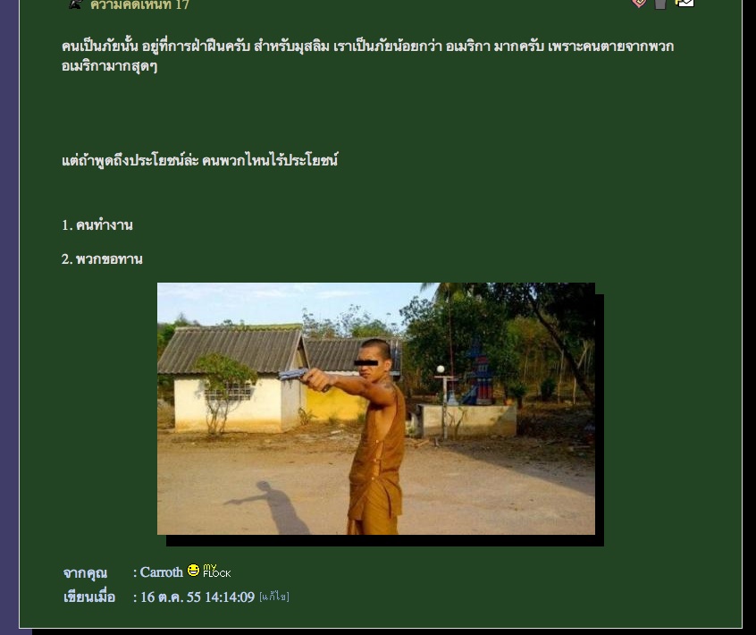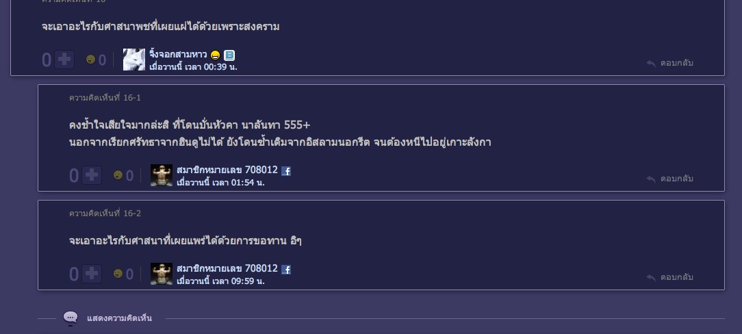 จากการที่มีสมาชิกบางคนกล่าวว่าพระภิกษุคือขอทาน หรือศาสนาพุทธเผยแผ่ด้วยการขอทาน และคนที่พูดนี้คือมุสลิม ไม่ใช่ครั้งเดียวแต่เห็นมาหลายครั้งแล้ว ตามด้านล่าง