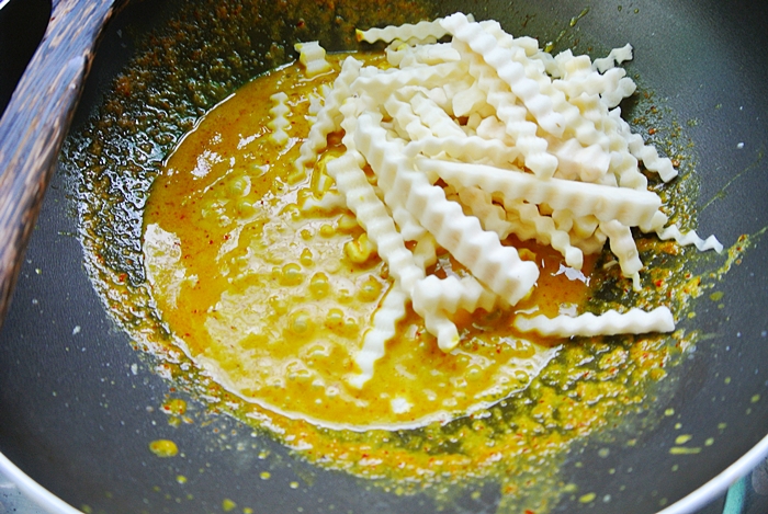 เคี่ยวกะทิจนร้อนดีแล้วใส่พริกแกงลงไปค่ะ