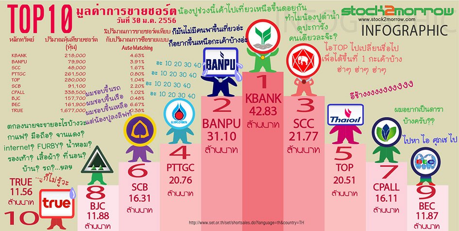 Top 10 มูลค่าการขายชอร์ต (Short Sell) วันที่ 6/02/2556