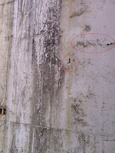ในส่วนของโครงสร้างผนังชั้นล่างเป็นแบบหล่อในที่ เท่าที่ดูเจอรูโหว่อยู่หลายจุด แถมคราบน้ำตามผนัง แบบนี้จะมีผลเสียในระยะยาวไหมครบ เรื่องความแข็งแรง
