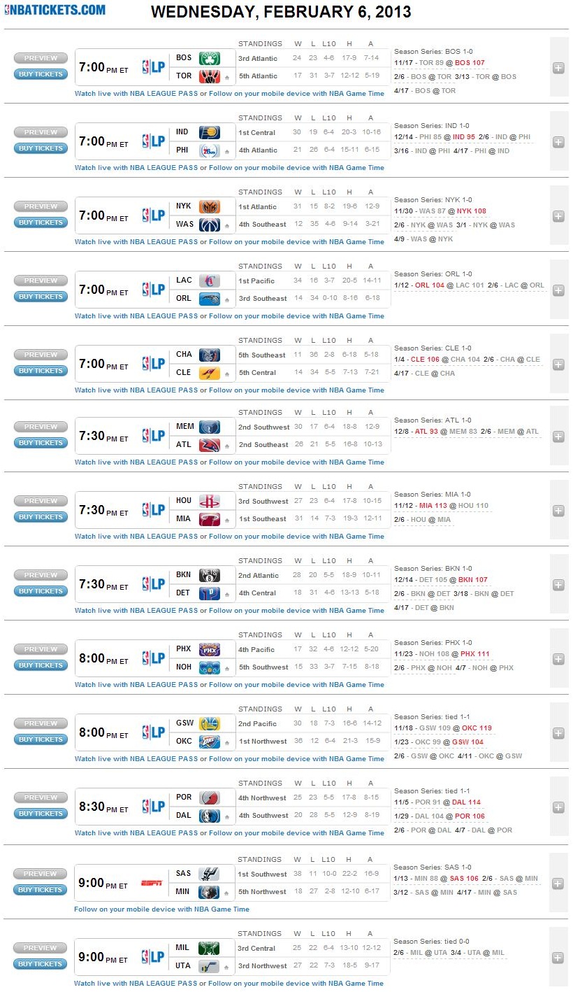 เข้าไปดูคะแนนได้ที่ http://www.nba.com/gameline http://www.nba.com/gameline/20130206/