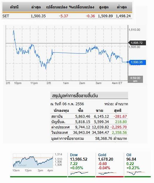 โยกลงไปต่ำกว่าเนินสำคัญ 1,500 แต่ก็สามารถขยับขึ้นมายืนที่เนิน 1,500 ได้ตอนปิดตลาด