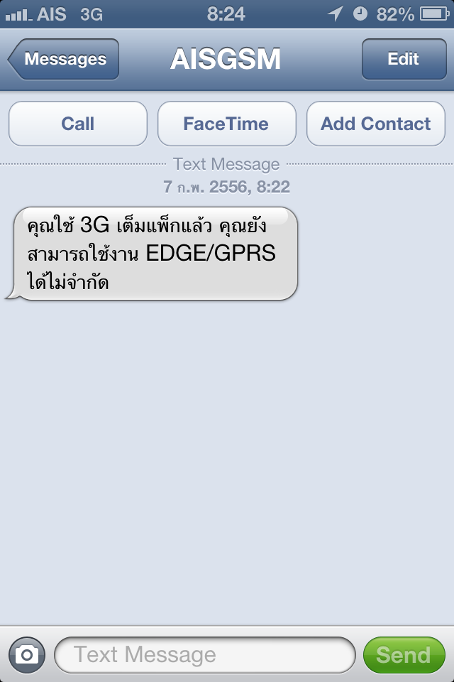 วันนี้ผมได้รับ SMS จาก AIS ว่าใช้ 3G เต็ม Package แล้วซึ่งผมใช้งาน 3G package iPhone Max 839 จะได้รับสิทธิ์ใช้งาน 3G ได้ปริมาณ 3GB