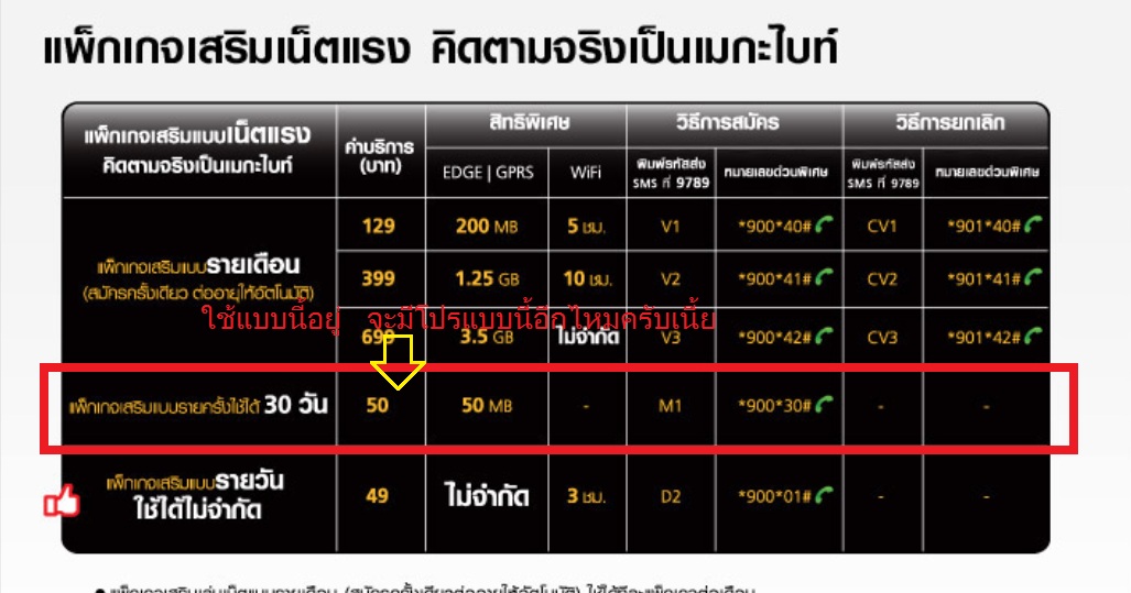 โปร DATA Package แบบ30วัน 50Mb จะมีให้ใช้อีกไหมครับ