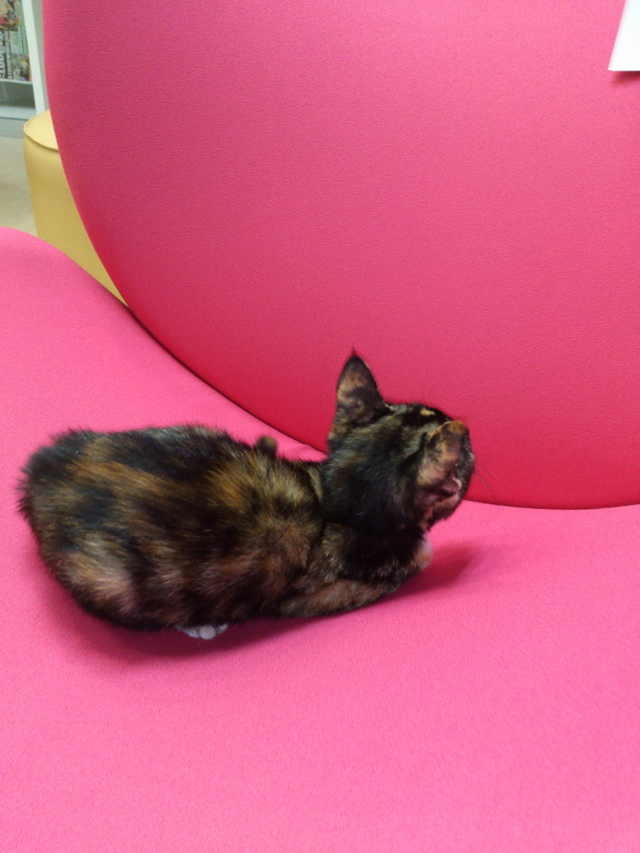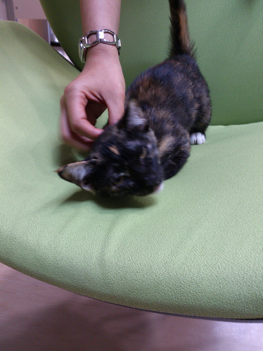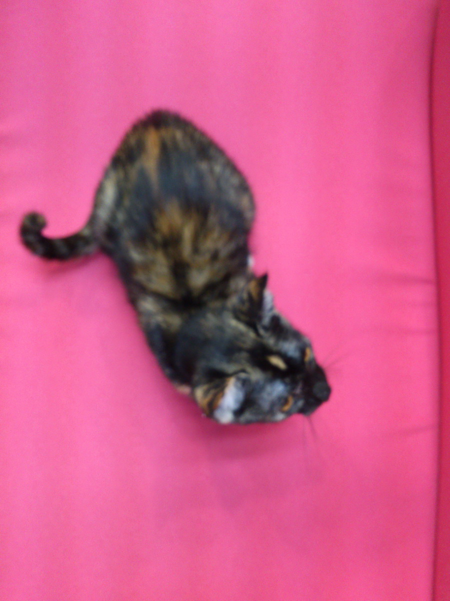 แมวน้อยเพศเมียอายุ 2 เดือน ลายสีเปรอะ น้องอ้อนเก่ง หม่ำง่าย ใช้กระบะทรายเป็น หากเค้าพูดได้ คงจะบ่นเบาๆว่า "อาจเป็นเพราะหนูเกิดมาสีนี้ เลยไม่อยากมีคนรับไปเลี้ยง" หากผู้ใดสนใจอุปการะน้อ