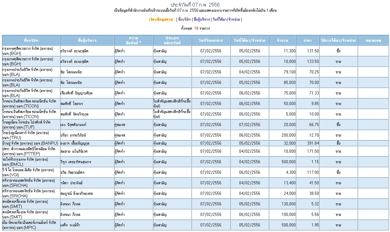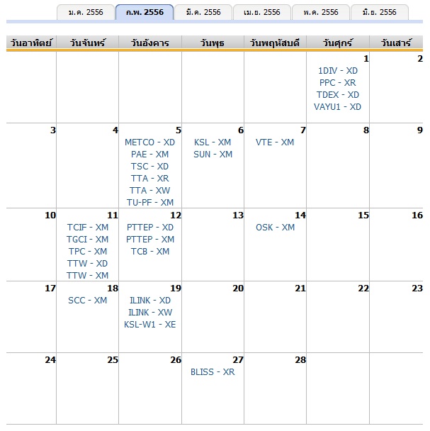 หุ้น XD ประจำวันและยอดซื้อขายของผู้บริหาร