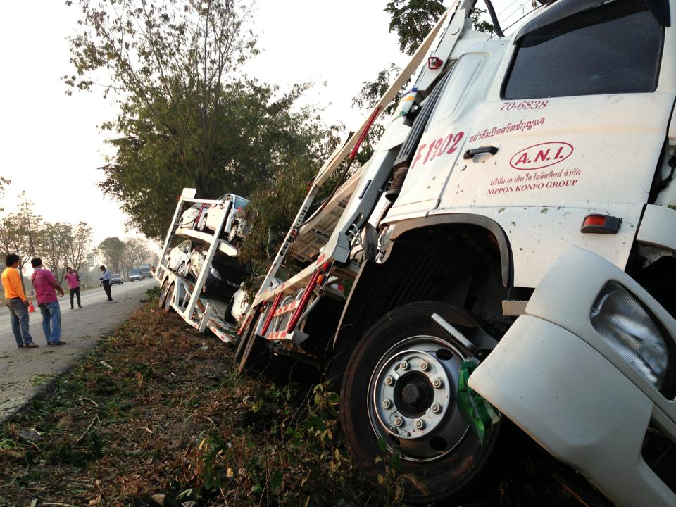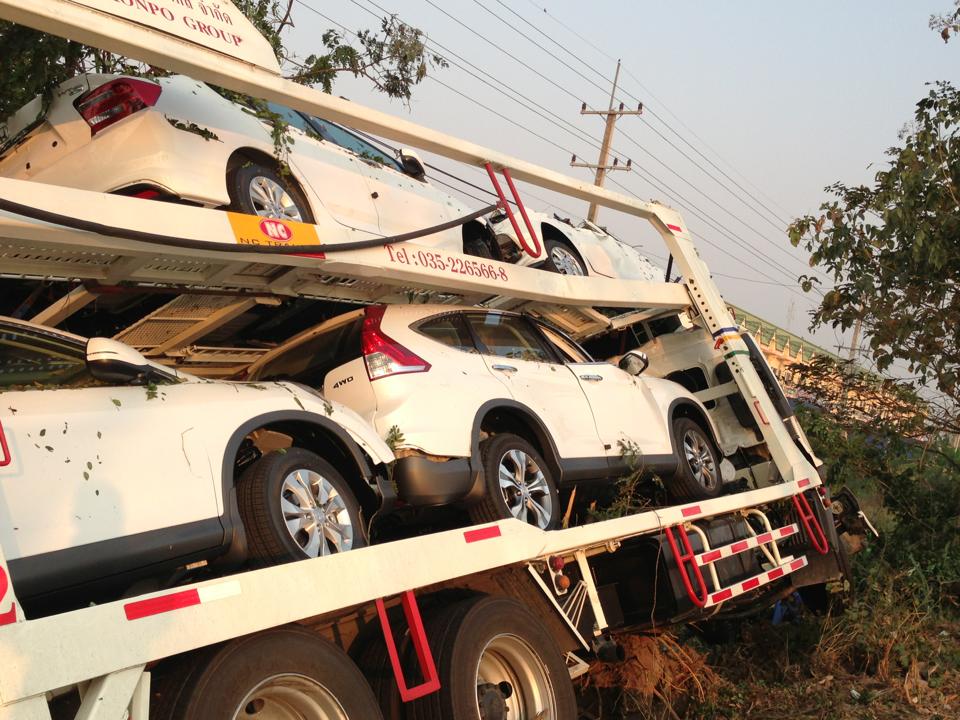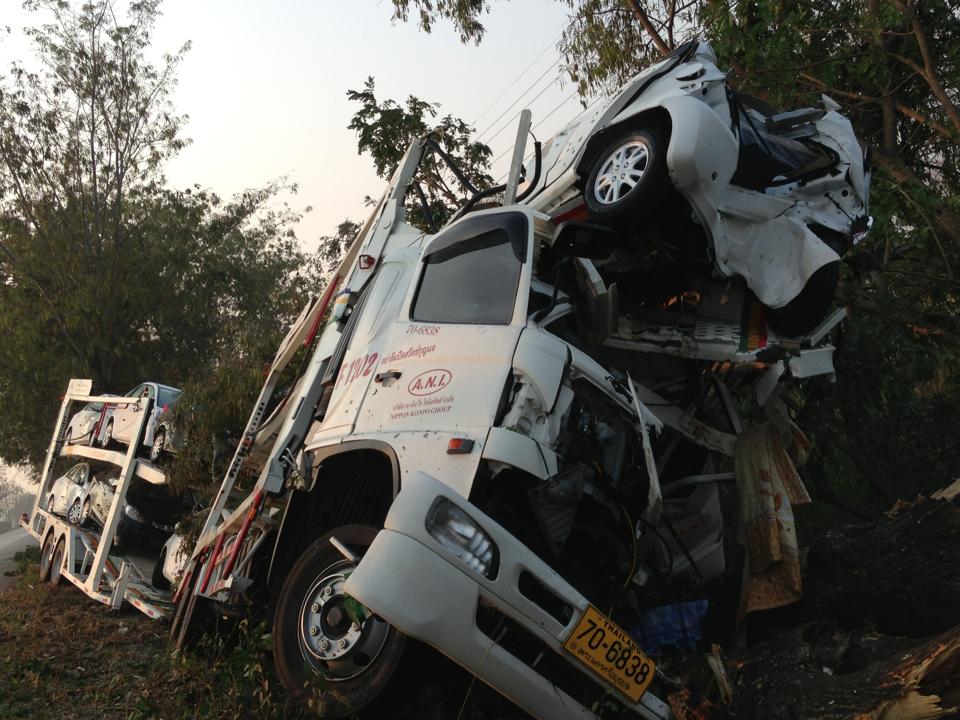 เพิ่มเติมนะครับ บนรถบรรทุกมีรถทั้งหมด 11 คันครับ สาเหตุเพราะคนขับหลับในครับ