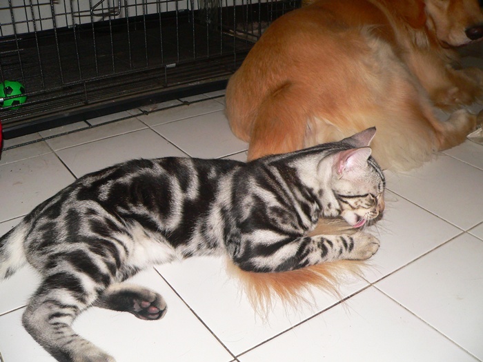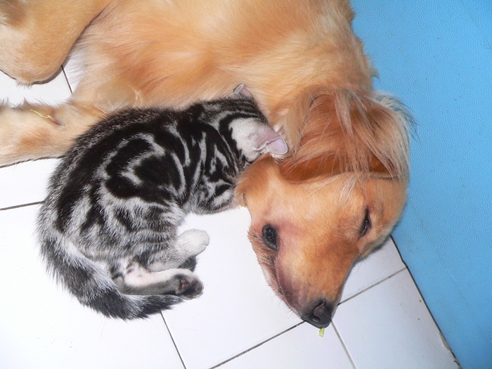 น้องตัวเล็กๆ มาอยู่บ้านใหม่ๆ ต้องไปซุกนอนกับพี่คิงแทบทุกตัว อบอุ่นค๊าบ