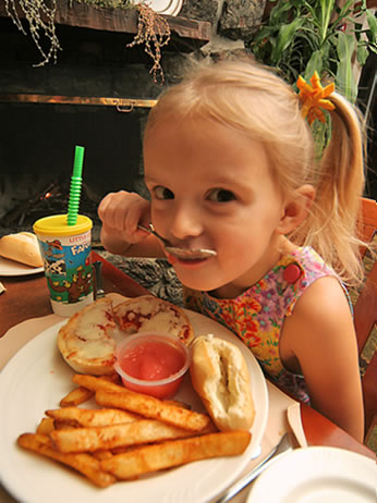 เราซึ่่งนั่งอยู่ตรงนั้นก็เหลียวไปมอง ทำให้เข้าใจสถานการณ์ได้ทันทีค่ะ คือมีน้องผู้ชายคนหนึ่ง ในมือถือถาดอาหารที่หมายมั่นจะเอาไปนั่งกินที่โต๊ะ แต่ก่อนจะไปถึงจุดนั้น จะต้องฝ่าช่องเล็กๆที่อยู่ระหว่างเก้าอี้ของเราและผู้หญิงอเมริกันคนหนึ่งซึ่งมากับเพื่อนสาวและลูกๆของพวกเธอ