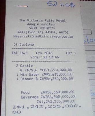 ผลจากอัตราเงินเฟ้อที่เพิ่มสูงขึ้นอย่างรุนแรงภายในประเทศซิมบับเว