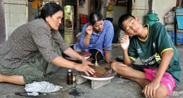 ฮือฮาแม่เฒ่าใช้ภูมิปัญญาชาวบ้านรมสมุนไพร "แมงกินฟันออกหู"