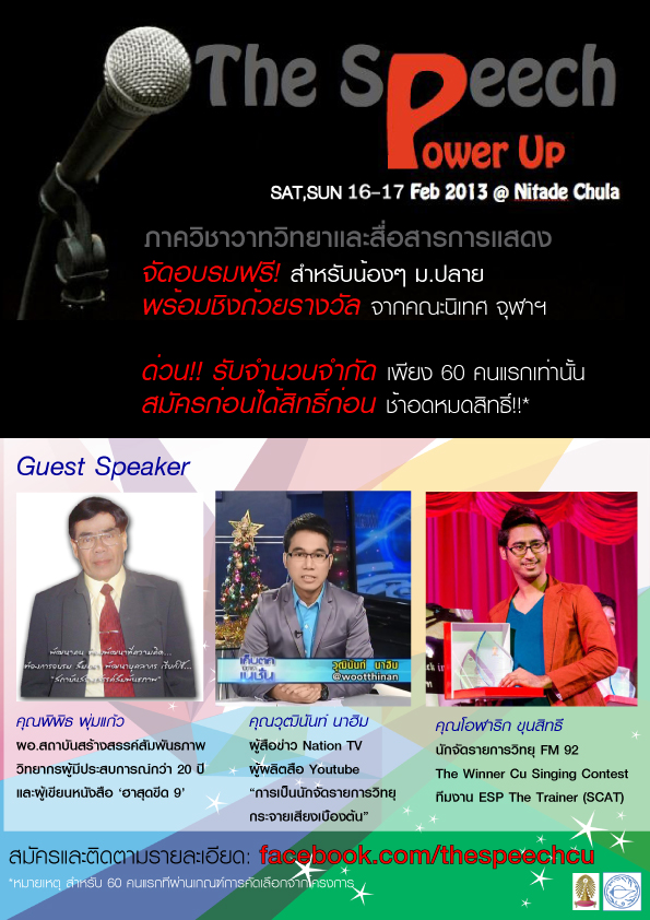 The Speech Contest อบรมฟรีตลอดงาน จากนักพูด'ฮาสุดขีด9' นักข่าว Nation ได้รับเกียรติบัตร ชิงโล่ห์รางวัลจาก นิเทศ จุฬาฯ
