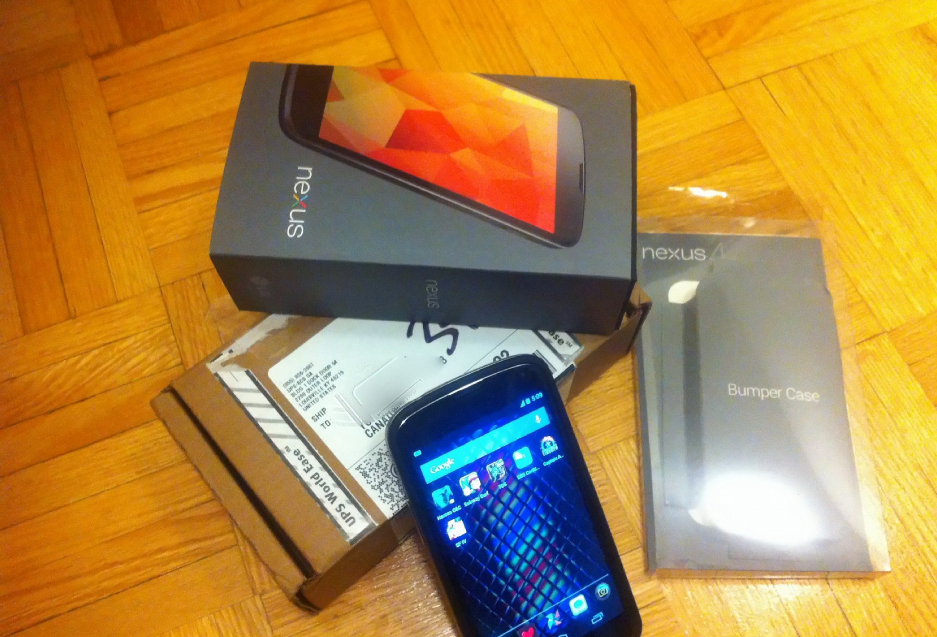 ก่อนอื่นต้องขอเกริ่นกันซักนิดก่อนจะได้เจ้า nexus 4 ตัวนี้มา ผมได้ซื้อเจ้า galaxy s3 มาจากไทยเมื่อตอนกลับไทย สามเดือนก่อน ก็เป็น international version แต่ปัญหาคือ ผมเพิ่งเปลี่ยนจาก Rogers มาเป็น wind mobile ซึ่งเจ้า s3 ผมไม่รองรับ AWS เลยต้องมาลงที่เจ้า nexus 4 เอาละ เรามาเริ่มกันแบบบ้านๆดีกว่าเนอะ