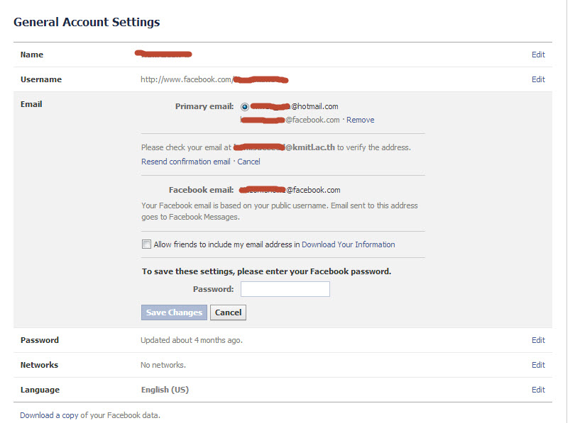 การเปลี่ยนอีเมลล์บนเฟสบุค