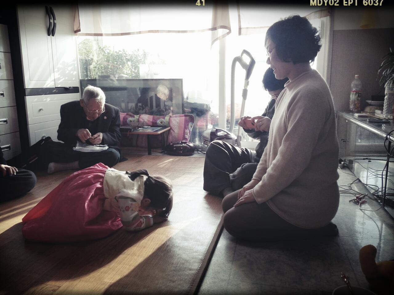 ที่เกาหลีนั้น ทุกคนจะกลับบ้าน เพื่อไปรวมตัวกันที่บ้านใหญ่ คือ บ้านที่มีผู้สูงอายุที่สุดในครอบครัวที่อาศัยอยู่แต่จะต้องเป็นญาติทางฝ่ายชายเท่านั้น ดังนั้น ครอบครัวเราจึงต้องไปรวมตัวที่บ้าน คุณปู่คุณย่าทวดของซิดนีย์ค่ะ คุณปู่ทวด น่าจะอายุราวๆ 93 - 94 ปีแล้วค่ะ ><