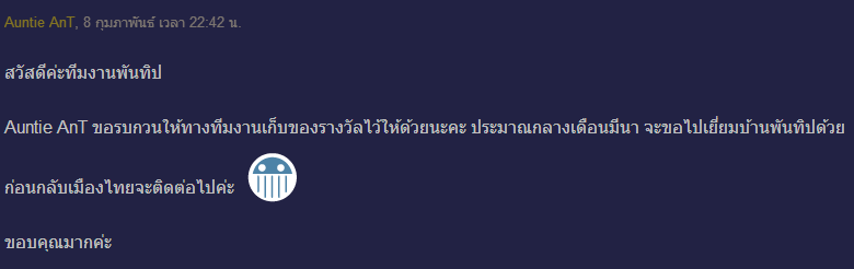 วันนี้ A Touch of Friendship มาอัพเดทความคืบหน้าการส่งของรางวัล ในกิจกรรม "ฉลองปีใหม่เผื่อทีมงานพันทิป" ค่ะ