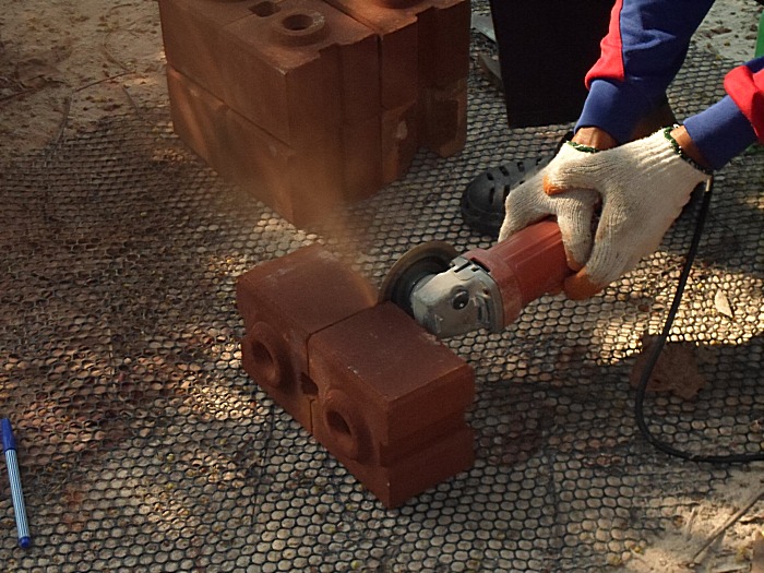 พอถึงแถวที่ 2 ต้องเรียกผู้ช่วยแล้ว.....เพราะอิฐแบบครึ่งก้อนที่ร้านไม่มีขาย