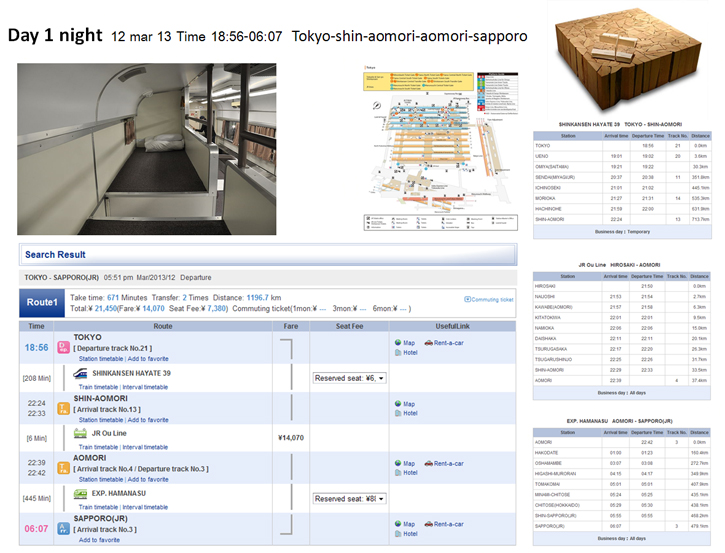 แผนคืนที่ 1 ของการเดินทางโดยรถไฟมุ่งสู่ Sapporo ใช้เวลาประมาณ 11 ชั่วโมง
