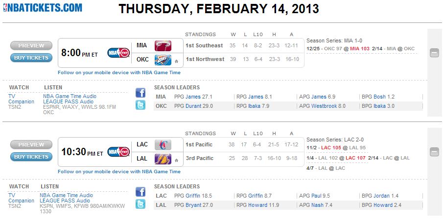 โหวตผู้เล่น BBVA ทีม Shaq และ ทีม Chuck ได้ที่ http://risingstarssweeps.nba.com/ ลิ้งดูสด http://nbaliveonline.tv/streaming/ http://www.streamhunter.eu/basketball-live-streaming-video.html http://www.vipboxsports.me/sports/basketball.html เข้าไปดูคะแนนได้ที่ http://www.nba.com/gameline http://www.nba.com/gameline/20130214/ Happy Valentine's Day