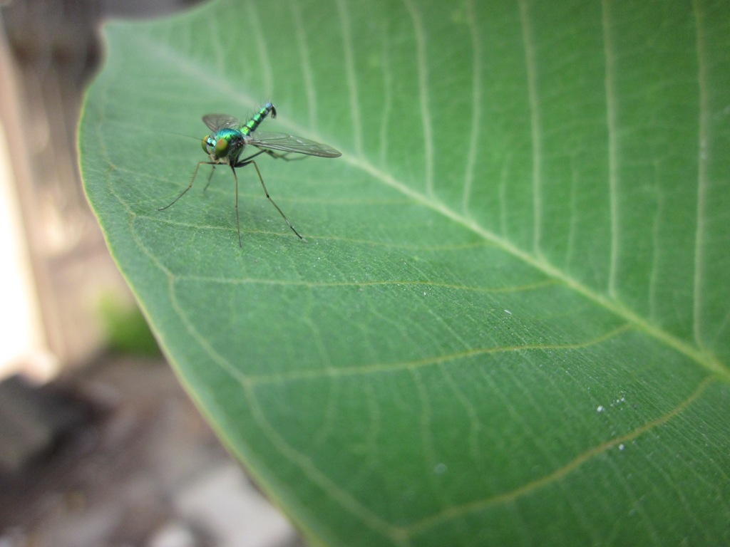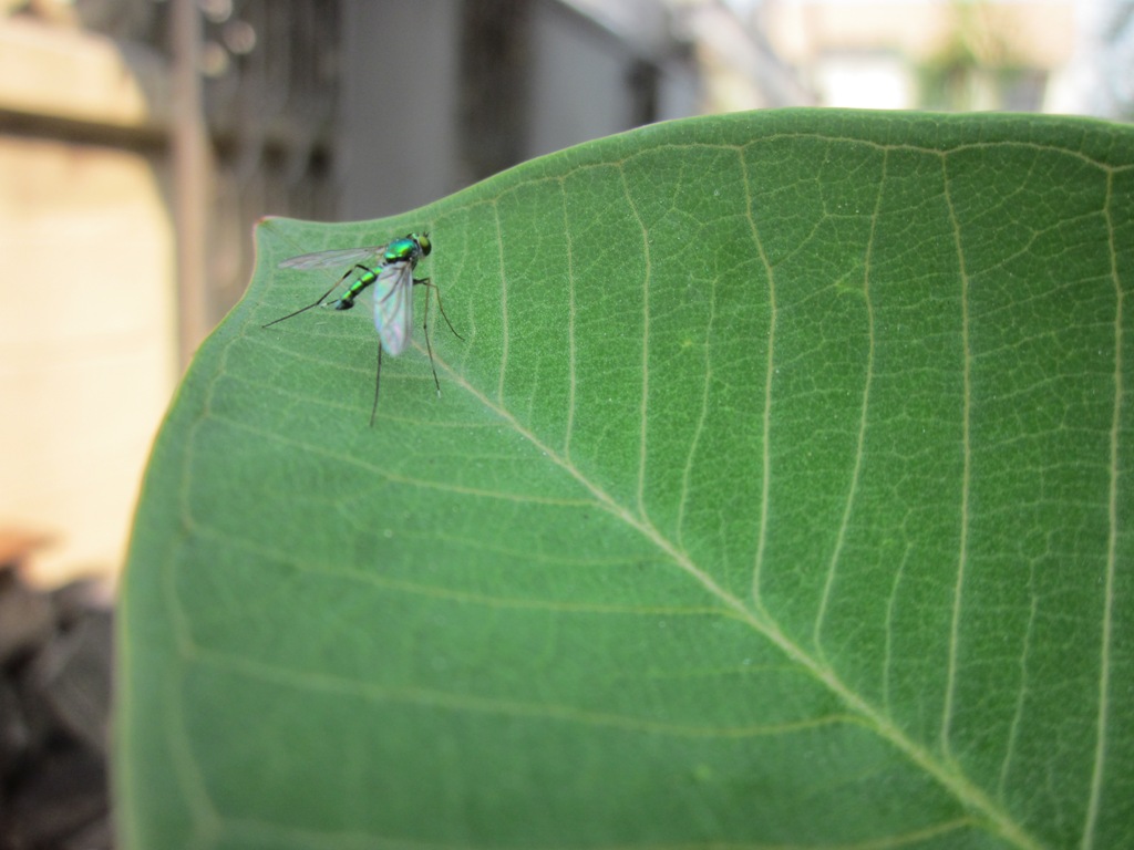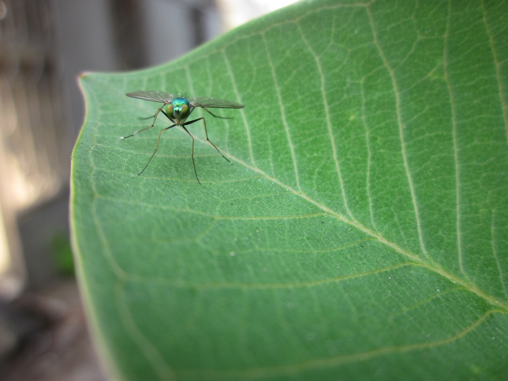 นายแบบเดินวนอยู่บนแคสวอร์คใบเขียวของต้นลั่นทม