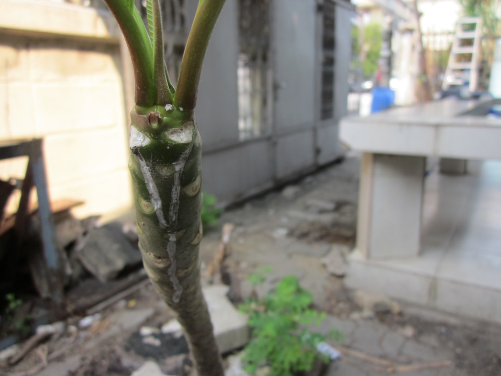 พี่ ๆ ที่บริษัทปลูกต้นนี้มาร่วม 2 ปีกว่าให้แล้ว ไม่เคยออกดอกสักที ข้าเจ้าเลยอาสา ทำให้มันออกดอก เลยเด็ด ๆๆๆ ก้านใบมันออกให้หมด