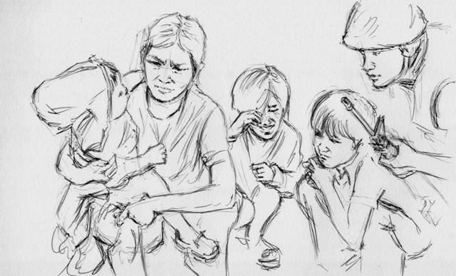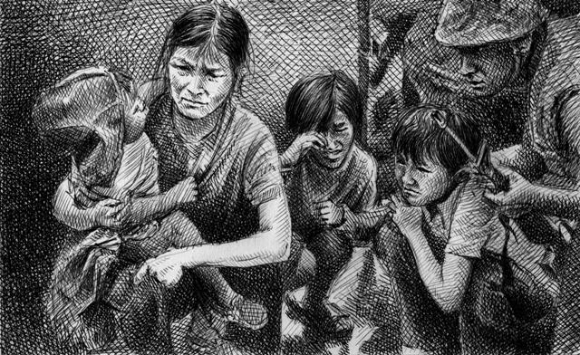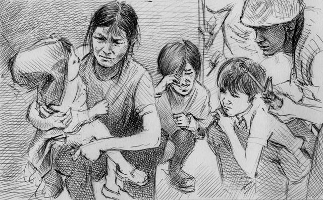 ภาพลายเส้นปากกาหมึกดำ "สงครามเวียดนาม"