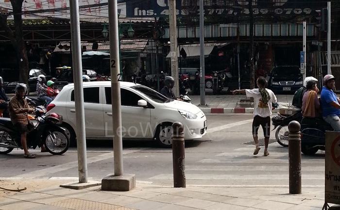 กวัดแกว่งและชี้หน้าผู้ขับขี่รถบนท้องถนน