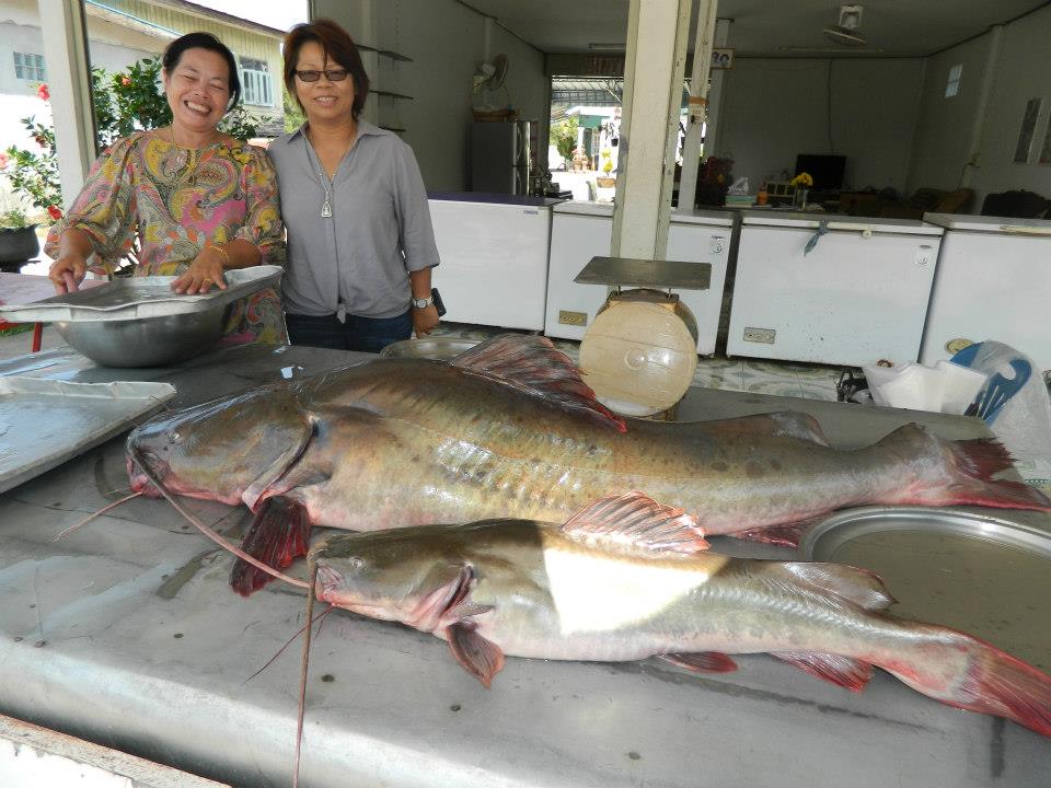ปลาคังที่เห็นน้ำหนัก 28 กิโลกรัม ขายกก.ละ 350 บาท ตัวนี้ราคา 9,800 บาท จับได้แถวบ้านผาตั้ง ต.บ้านหม้อ อ.สังคม จ.หนองคาย