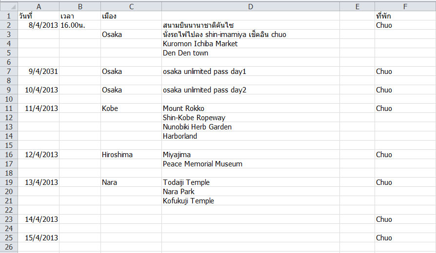 รบกวนช่วยดูแผนการเที่ยวเขตคันไซหน่อยค่ะ