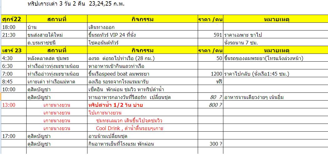รบกวนขอความเห็นค่ะ : แผน เกาะเต่า นางยวน23-25ก.พ. โอเคไหมคะ