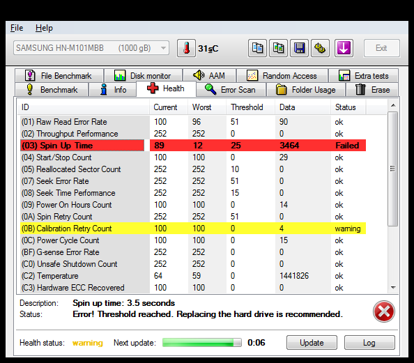 พึ่งเคยซื้อ Ultrabook ที่ storage เป็น ssd มาใช้ครั้งแรก ลอง check hdd ในโปรแกรม HD tune หน้า error ขึ้นแดงตั้งแต่แรกเลย แล้วมันก็อ่านต่อไม่จบ หน้า Health ไม่ขึ้นอะไรเลย อย่างงี้ปกติมั้ยครับ ไม่รู