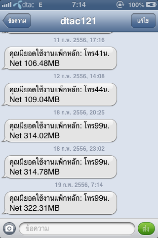 วันนี้เช็คอีกครั้งเวลา 7.14 น. แจ้งว่าผมใช้เน็ตไป 322.21 m