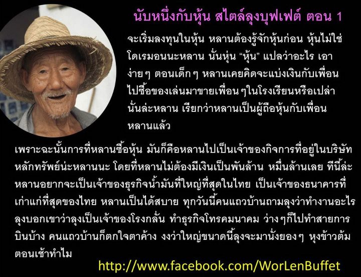 ฮาๆกับลุงบุฟเฟต์ ช่วงตลาดเปิดนะครับ http://www.facebook.com/WorLenBuffet