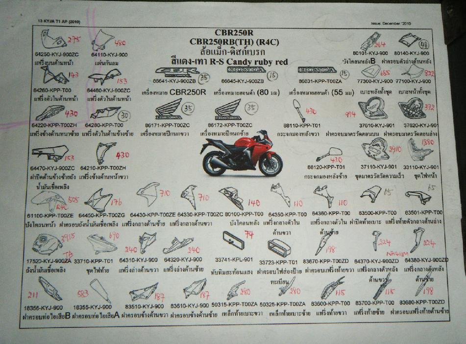 หลังจากเอา น้อง CBR250R ไปลงขาลงจากเขากระโจมแล้ว สภาพรถ ยับเยิ้น พอสมควร อะไหล่ที่เสียหาย สั่งทางศูนย์ ใกล้ที่ทำงาน จัดการหาสั่งมาให้ แต่มีเรื่องผิดพลาดเล็กน้อย คือ สั่งสีดำ ดันได้ แฟริ่งข้างสีแดง ม