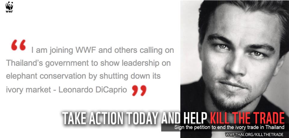 เอเจนซีส์/ASTV ผู้จัดการออนไลน์-ลีโอนาร์โด ดิคาพริโอ พระเอกดังจากฮอลลีวูด ออกโรงเรียกร้องให้ น.ส.ยิ่งลักษณ์ ชินวัตร นายกรัฐมนตรีหญิงของไทยช่วยอนุรักษ์ช้าง โดยการสั่งแบนการค้างาช้างทุกประเทศในแผ่นดินไทย