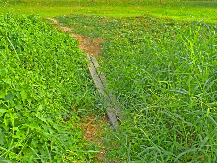 นอนทอดกายพาดผ่าน ท้องร่องไป