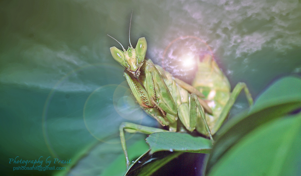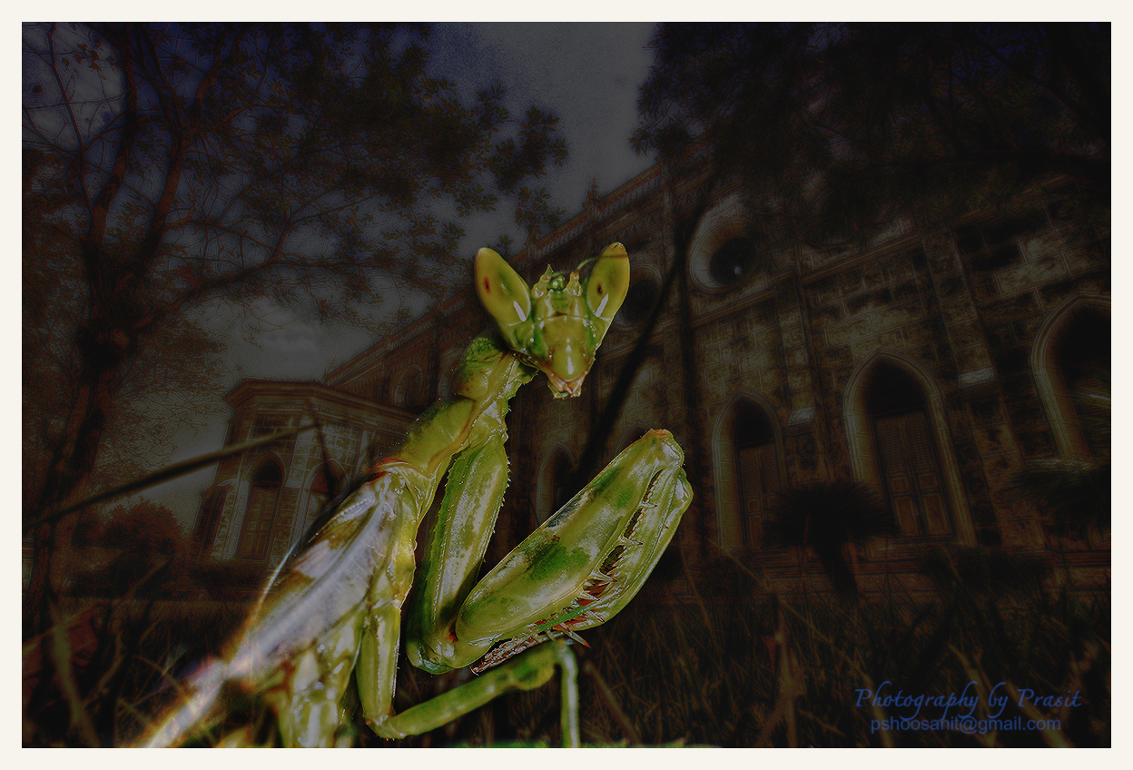 เริ่มที่นำภาพมาโครตั๊กแตนมวย มายำรวมกับภาพอาคารสถานที่ แบบเรื่อยเฉื่อย ออกมาแบบนี้