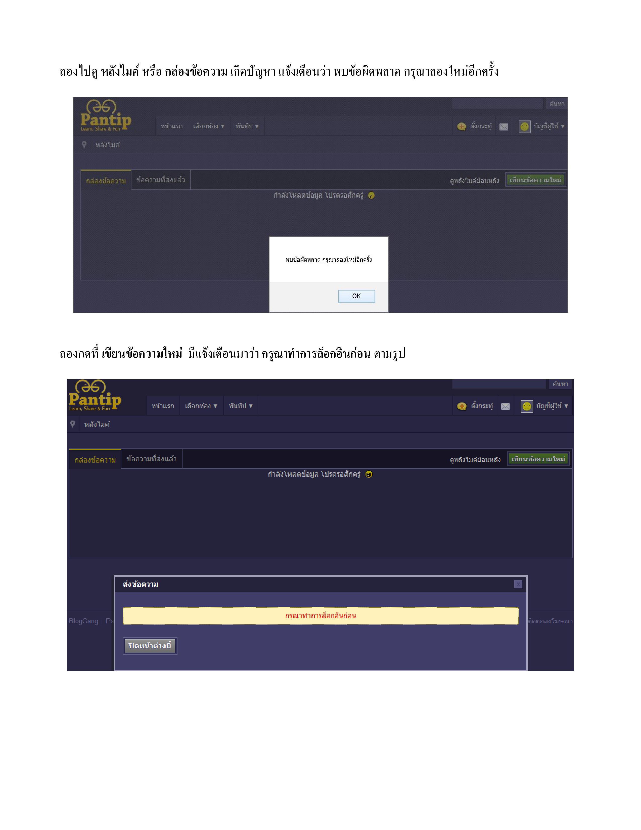 ดูตามรูปนะคะ ทีมงานช่วยติดต่อกลับมาทางอีเมล์ของเราด้วยค่ะ อีเมล์ที่ทาง Pantip มีในระบบเลยค่ะ อย่าส่งมาทางหลังไมค์นะคะ เพราะใช้งานไม่ได้ค่ะ