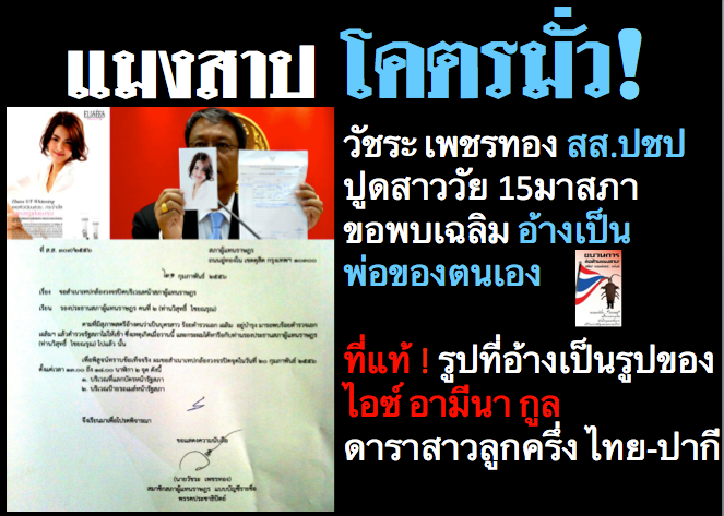 ส่วนภาพของนางแบบรายหนึ่งที่มีการนำมาเผยแพร่ในโซเชียลมีเดียขณะนี้ ซึ่งตรงกับภาพที่ตนนำมาเปิดเผยนั้น ตนก็ไม่ทราบว่าใช่ น.ส.วายุหัสเทพฌ์ ได้ทำงานอะไรมาบ้าง แต่ถ้าไม่ใช่ลูกของ ร.ต.อ.เฉลิมนั้น ก็ต้องขอภัยและพร้อมรับผิดชอบ ซึ่งเรื่องนี้ตนไม่คิดเป็นการเสียเครดิต เพราะเชื่อมั่นในเจ้าหน้าที่ของพรรคคนดังกล่าว และการแถลงก็ไม่ได้เป็นการหมิ่นประมาท ร.ต.อ.เฉลิม แต่อย่างใด เพราะมีการระบุว่า มีการกล่าวอ้างว่าเป็นลูก ร.ต.อ.เฉลิม ซึ่งถ้ามีการฟ้องร้องตนก็พร้อมสู้คดี ทั้งนี้หากผู้หญิงคนดังกล่าวบริสุทธิ์ใจจริง เดือดร้อนตามที่ร้องเรียนนั้น ก็ขอให้ออกมาเปิดเผยตัวเองเพื่อยืนยันข้อเท็จจริง ลดข้อกังขา และตนก็พร้อมพาไปพบ ร.ต.อ.เฉลิม ด้วย