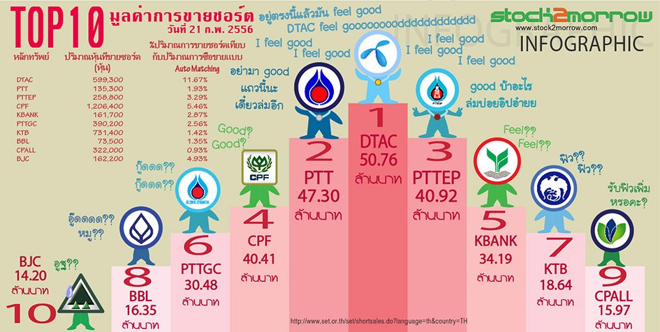 Top 10 มูลค่าการขายชอร์ต (Short Sell) วันที่ 21/02/2556