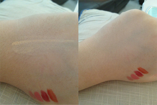 แต่พอทิ้งไว้ซักพักมันก็ซึมหายเข้าผิวไปเลยค่ะ ลงแป้งผสมรองพื้นต่อได้เลย + คุมมันเล็กน้อย