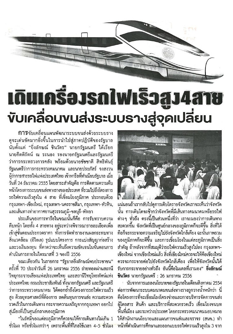 ยกเครื่องรถไฟเต็มสูบ ลุยสร้างรางคู่หวังให้บริการตรงเวลา 03/08/56 ไทยรัฐ (กรอบบ่าย)