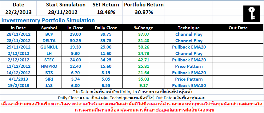 ติดตามผลการทดสอบกลยุทธ์ Trend Trading ด้วยพอร์ตจำลองแบบ Real Trade Real Money และ อัพเดตข้อมูลข่าวสารการลงทุน บทวิเคราะห์สภาวะตลาด รวมถึง บทวิเคราะห์หุ้นรายตัว ได้ที่