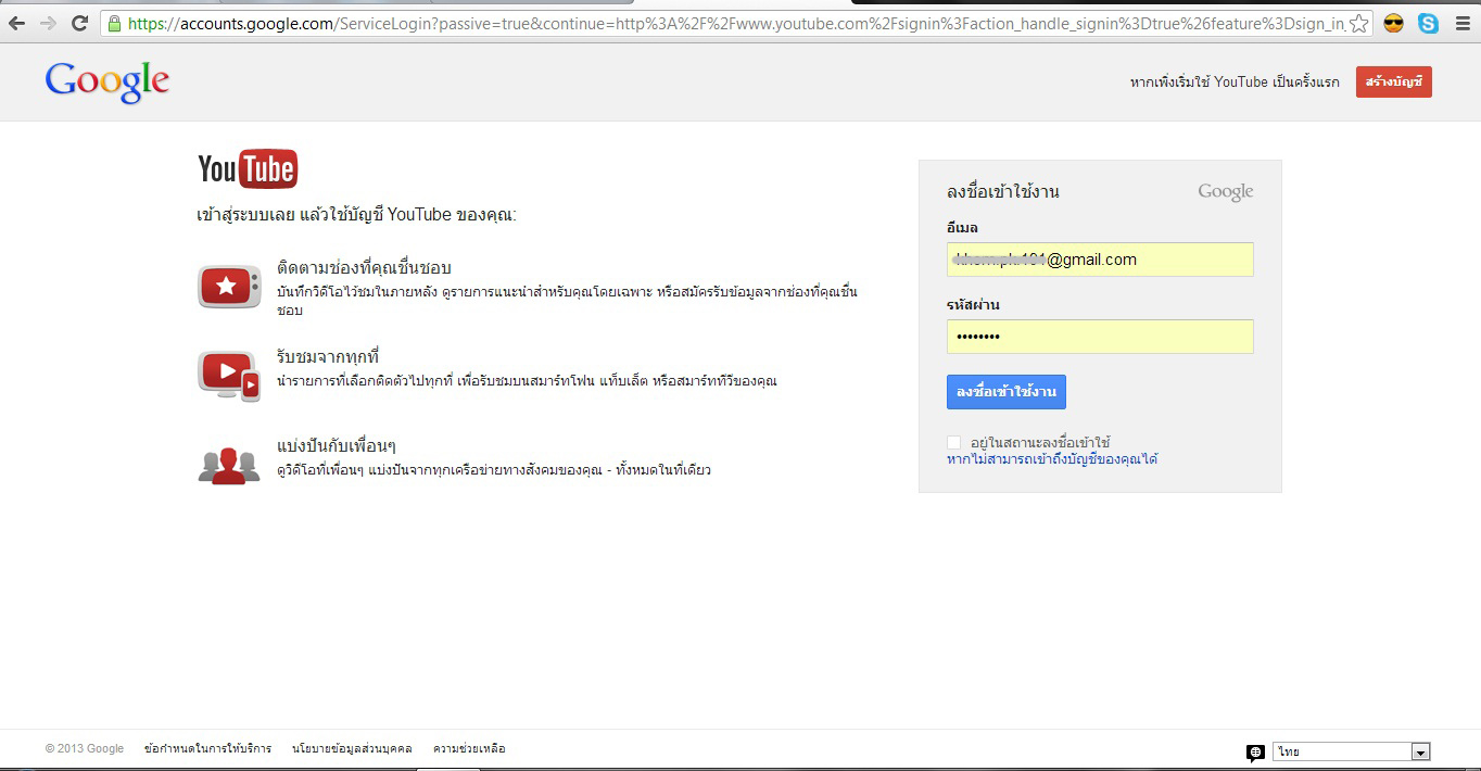 มีปัญหา เรื่องการเข้าใช้งานบัญชี youtube คับ
